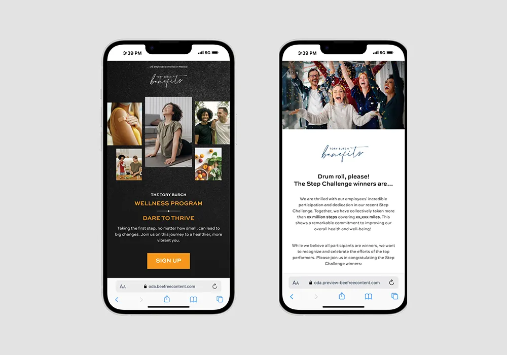 We partnered with Tory Burch to bring their employee benefits to life through strategic branding, thoughtful messaging and distinctive design. Our work included developing the taglines Live Life Your Way and Dare to Thrive, which captured the brand’s spirit and empowered employees worldwide to engage with their benefits in a meaningful way.